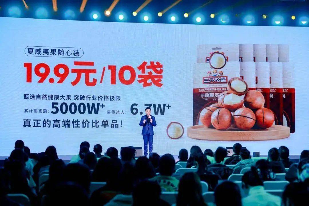 在當時,夏威夷果原料成本大幅下降,給了三隻松鼠降價的“天時地利”條件。三隻松鼠在抖音平台上推出19.9元10包的夏威夷果,由此收穫了意想不到的效果,直接打爆了抖音平台——這款夏威夷果短時間內銷量即突破百萬,此後幾個月,銷售額更是直接上億,超過此前三隻松鼠全年夏威夷果的銷量。在當下,時隔一年多,這次爆單仍被視作行業教科書級案例反覆援引。