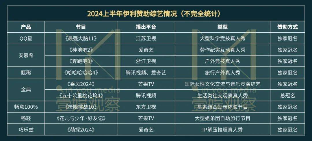 覆盤2024上半年綜藝贊助:伊利分心,新霸主救場_風聞