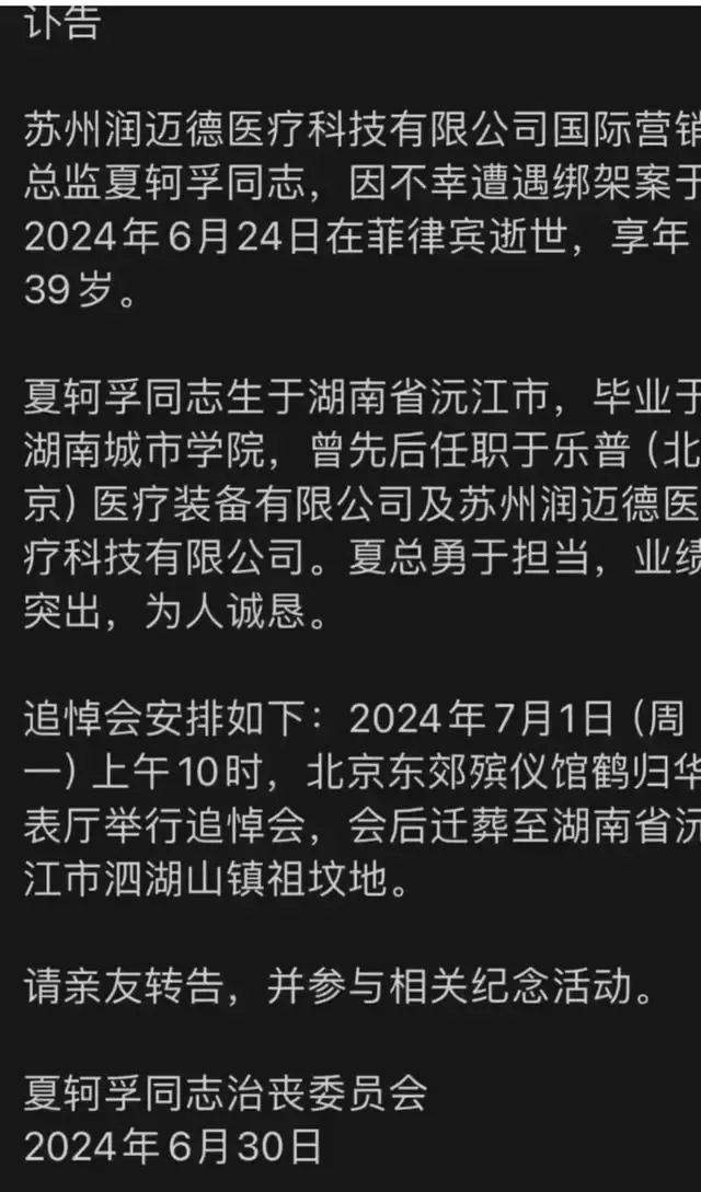 遇害的高管夏某生前為國內某知名醫療器械上市公司的國際營銷總監,在業內享有很高的聲譽,工作能力出眾,深受同事和客户的信賴。在他畢業的湖南城市學院,還被評為該學院近15年來最優秀的畢業生。