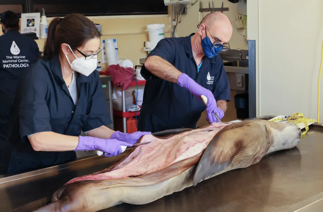 一隻海獅正在接受屍檢。|marinemammalcenter