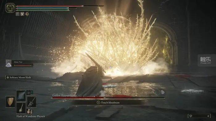 其實《艾爾登法環》本體有些Boss我也不喜歡,但遊戲在探索方面做得比較好,哪怕戰鬥差點兒意思,觀感也被平均了。更何況,本體在數值設計上也比DLC更友好,Boss雖然有“神經刀”,有連招,但一週目我的等級和血量至少能扛下5刀,容錯率尚可;到了DLC,Boss攻擊我只能扛下2刀,容錯率直線下降,更容易讓人煩躁。不僅如此,連招和特效也讓我覺得“量變引起質變”——原本一個Boss只有一兩個特效,DLC裏又是三連、五連,又是滿屏光波,還要上躥下跳。最終Boss更是滿屏都是,我實在看不清,也不想看了。