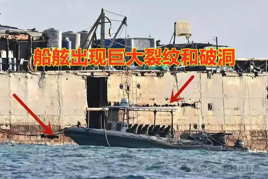 其次,菲律賓那艘“坐灘”在南海仁愛礁的破船,菲方人員的暴力改裝非但未能挽救其命運,反而加速了船體的崩潰。船體結構受損,嚴重進水,船員們被迫蜷縮於甲板之上,船艙內則是一片汪洋。