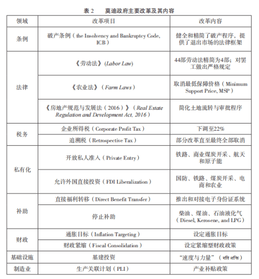 莫迪在2014年就任後理順了決策機制、重啓一大批改革項目、改善營商難度,整體上重啓了印度改革。在該背景下,莫迪政府為推動製造業發展改革涉及多個重要領域(見表2)。
