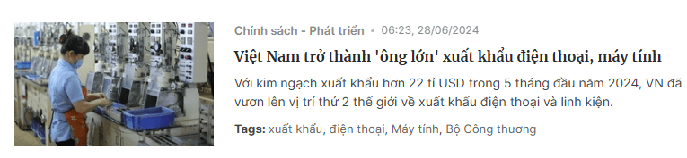 可越南電腦、手機、機械出口,怎麼會比服裝紡織出口額更高呢?像電腦和零部件出口,5個月就賣了270億美元,摺合人民幣近2000個億。手機和零部件出口,也賣了224億美元,約合人民幣1600個億。光電腦、手機和零部件出口,就給越南帶來了3600個億。可越南沒有一個全球性的電腦品牌,也沒有一個全球性的手機品牌,是誰在越南組裝電腦、手機呢?