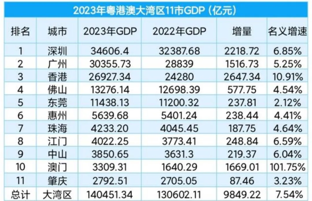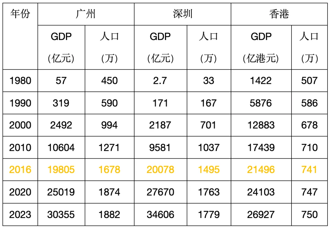 | 廣州、深圳、香港的GDP與人口變化對比表