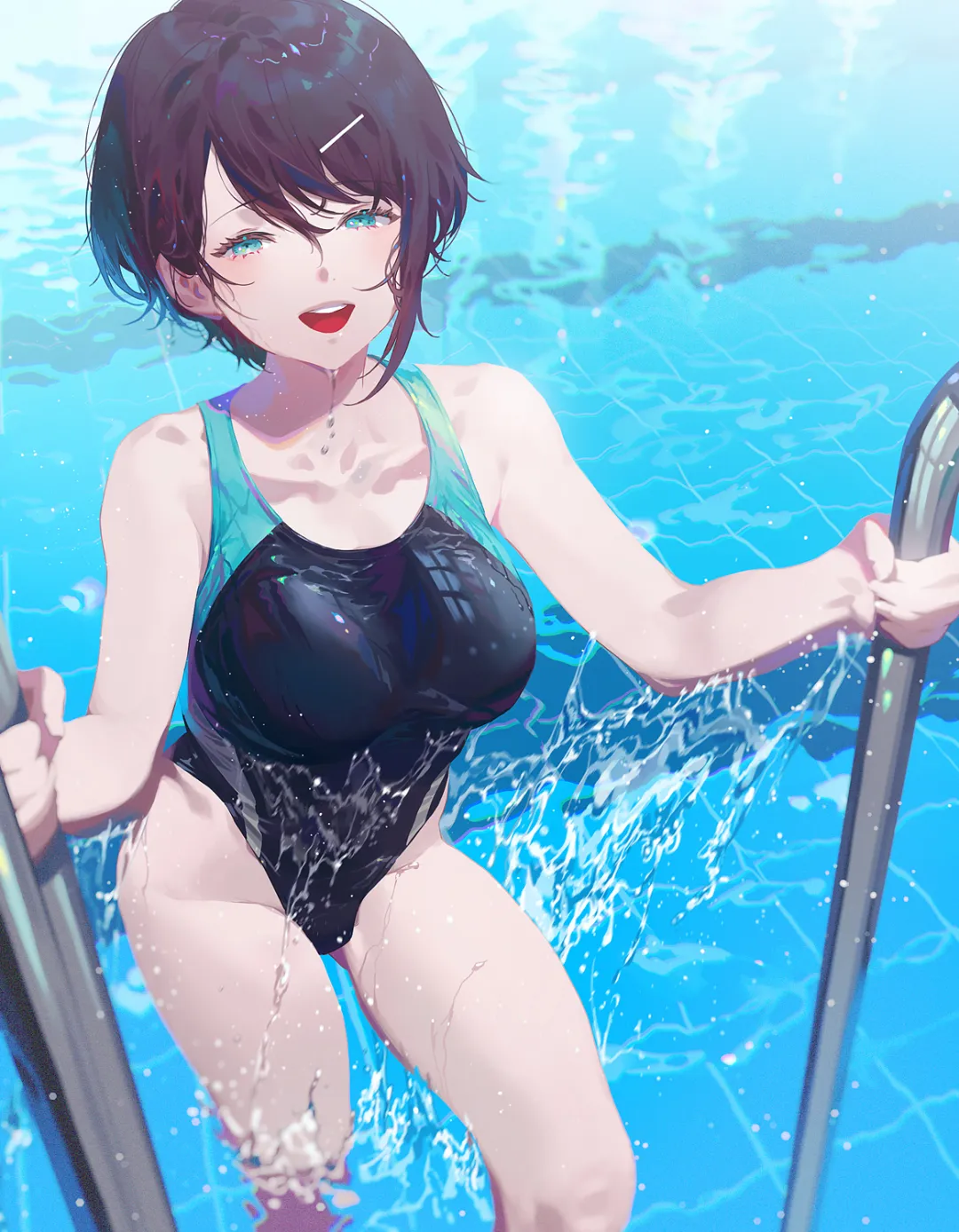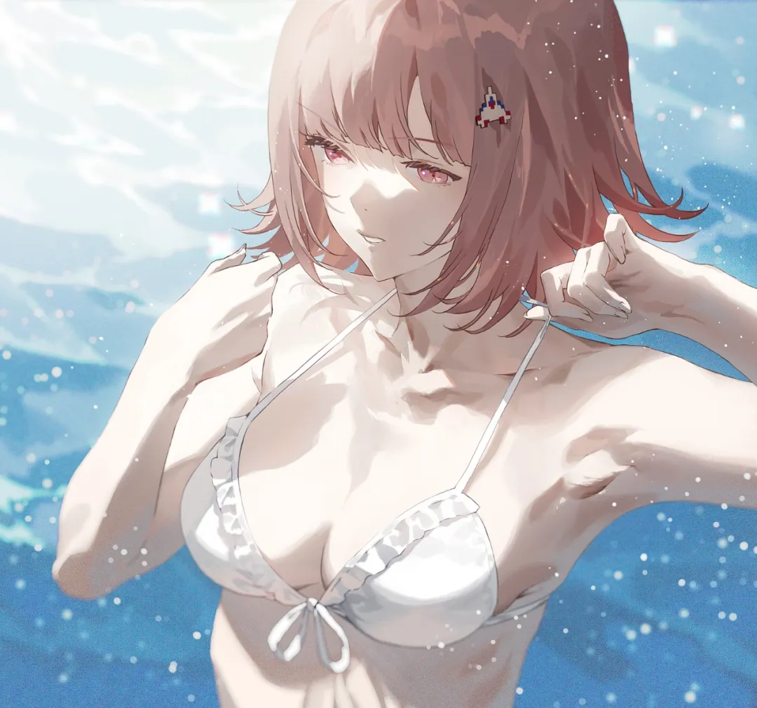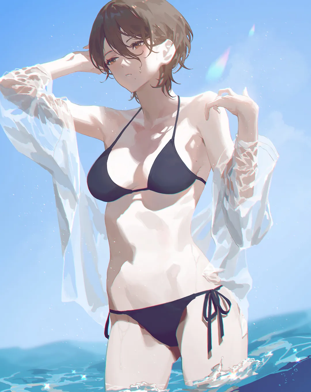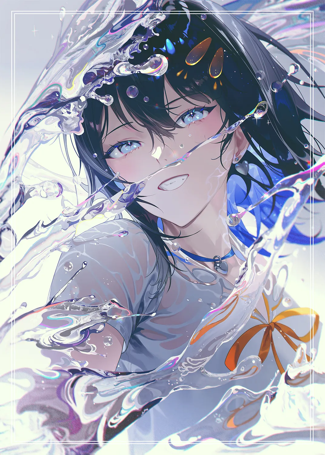 少女姣好而健康美麗的身材若隱若現,像是遊走在水中的精靈。彷彿要把水潑到我們身上一樣。