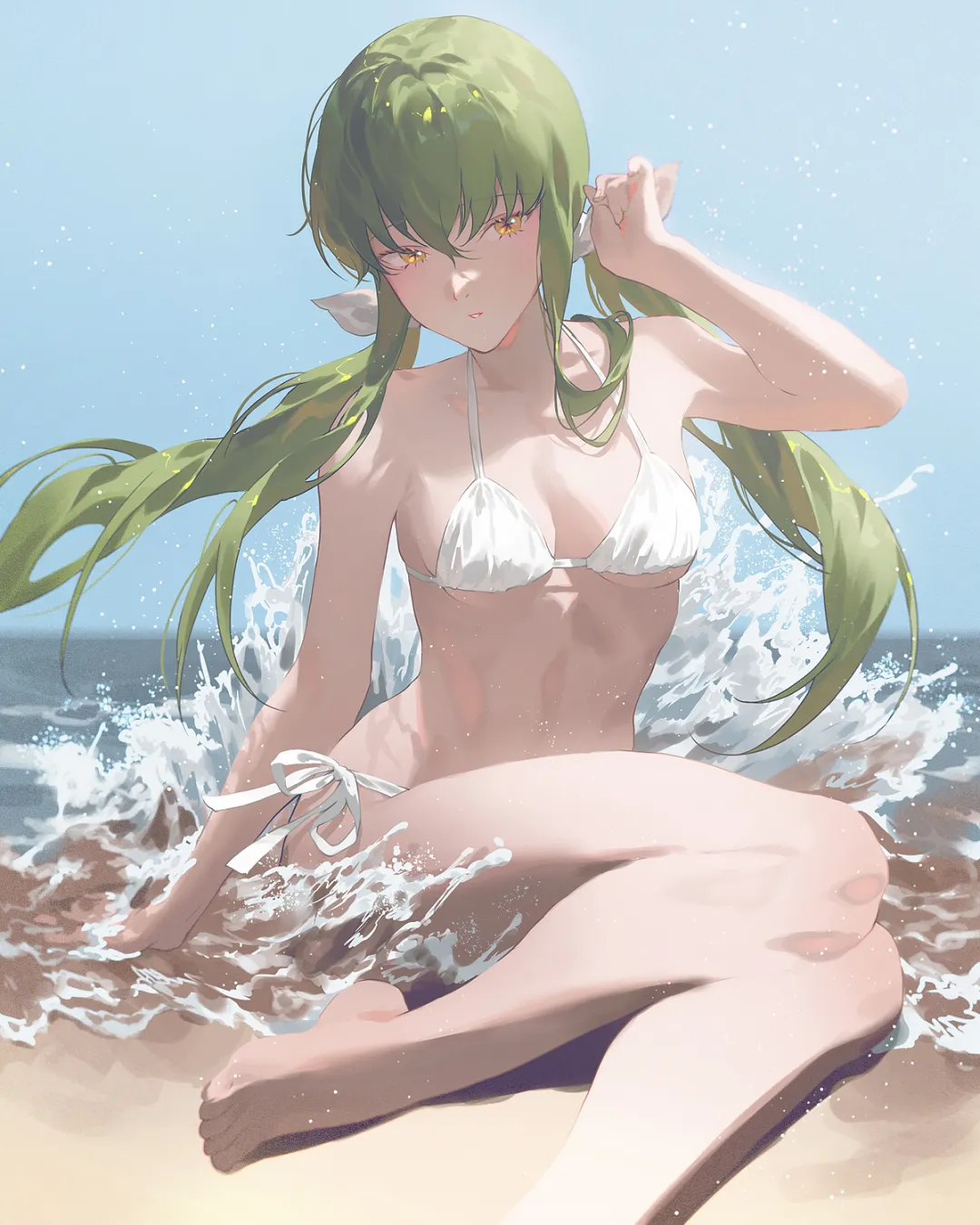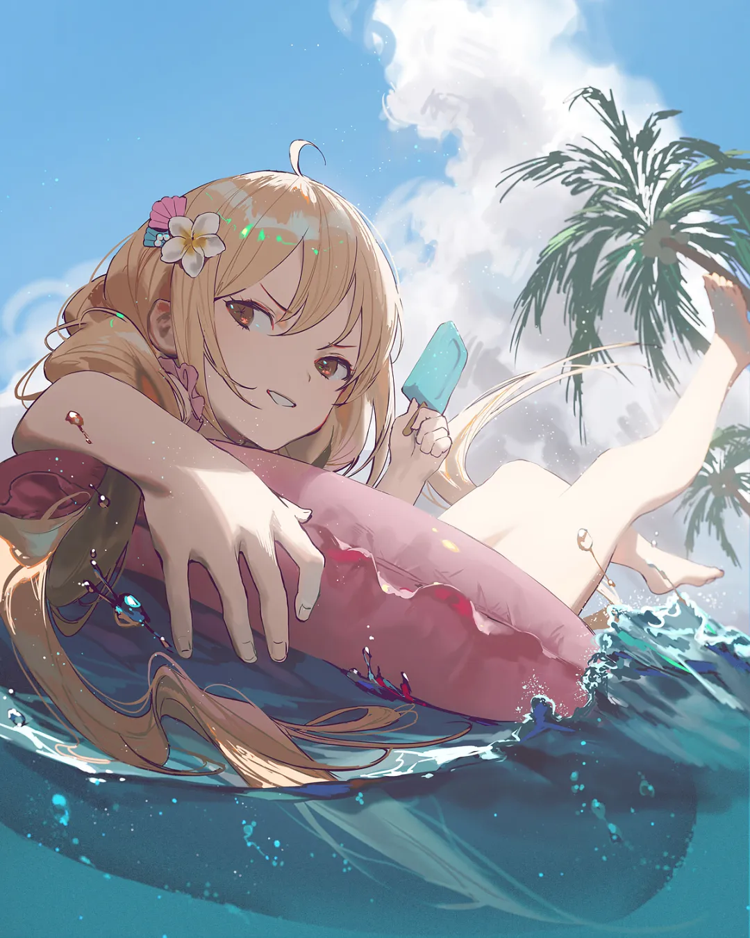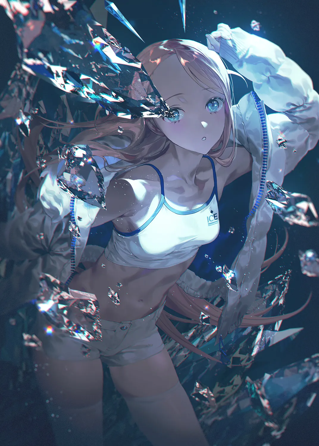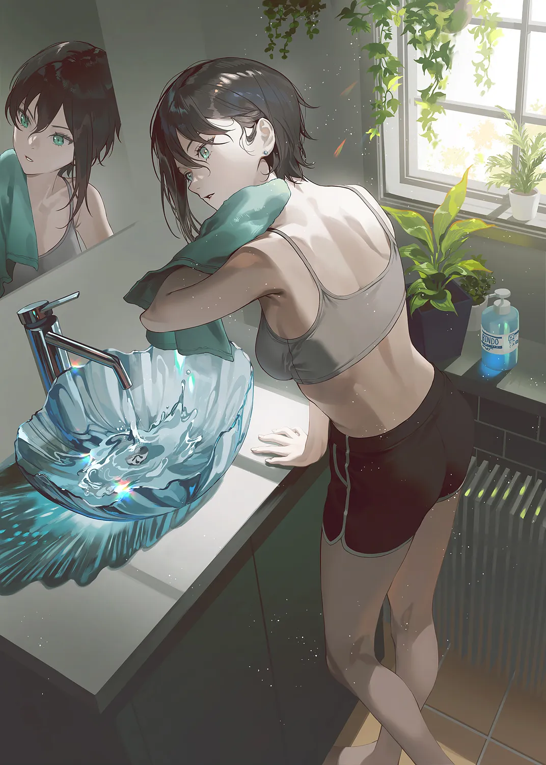 少女姣好而健康美麗的身材若隱若現,像是遊走在水中的精靈。彷彿要把水潑到我們身上一樣。