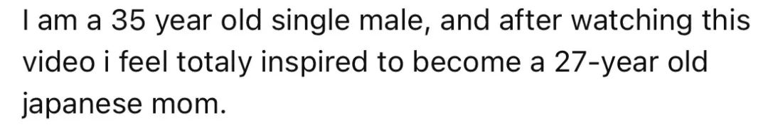 一位35歲的單身男士看完留言説,自己都被這個27歲的日本家庭主婦激勵了。