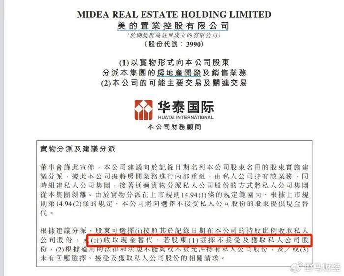 根據公告內容可知,美的置業計劃將其房地產開發業務通過內部重組,由私人公司持有,並通過實物分派私人公司股份的方式,將私人公司集團從上市公司中剝離。