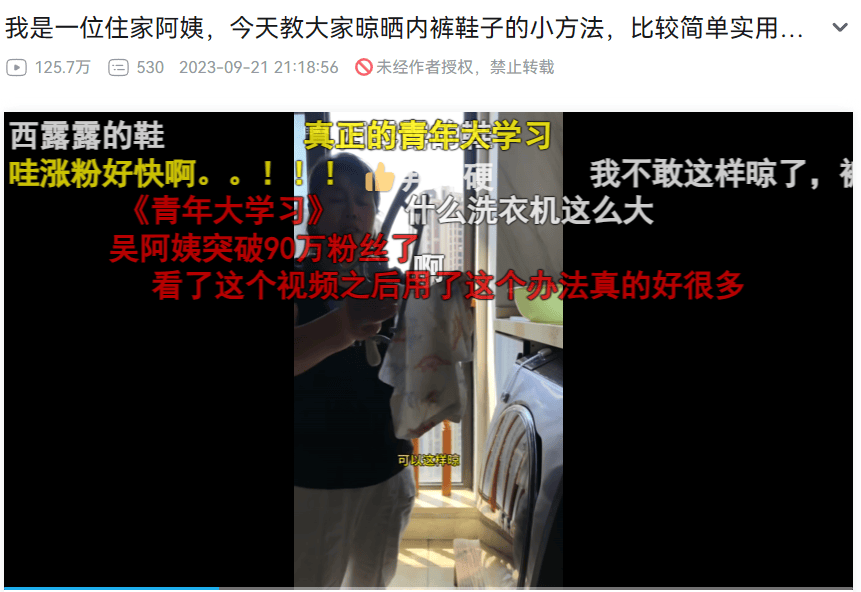 但現在,這一行業裏有普通保姆的賬號 @住家吳阿姨,吳阿姨所分享的都是自己從事保姆這一行當,所積攢下來的生活小技巧,比如每天就教大家如何吃薯片不粘手,如何打包家用垃圾,如何把酸奶喝的乾乾淨淨。