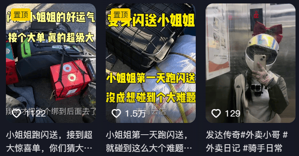 阿坤告訴我,他所面向的用户就是外賣騎手,算法會精準的把他的視頻推送給同行,他在線下跑業務的時候,跑同一塊區域的騎手幾乎都刷到過他的視頻,而他所刻意記錄的內容也主要是為騎手們答疑解惑。