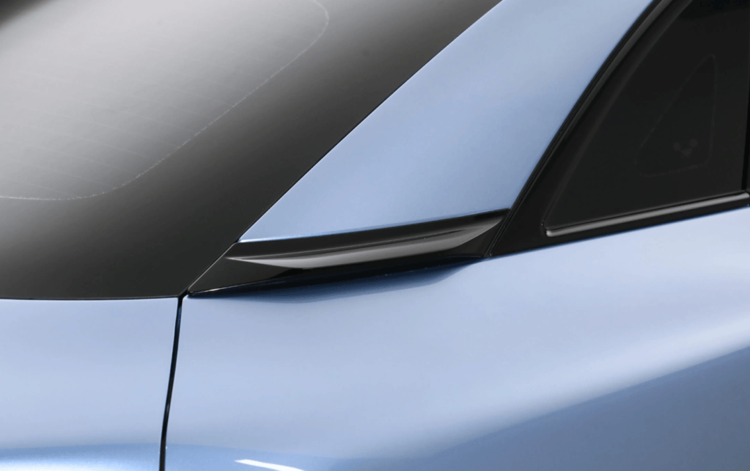 然後在 C 柱上有突出的一小塊擾流板,有那麼點像摩托車上的定風翼,應該也能優化一些風阻。