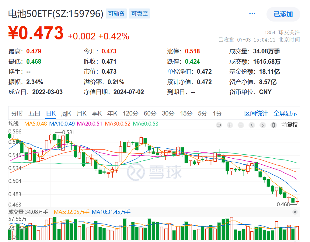 同類規模最大的電池50ETF(159796)昨日探底回升漲0.42%,收十字星!_風聞