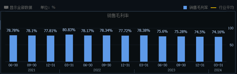 另外,由於普通酒產品毛利率較低,產品結構的變化導致捨得酒業毛利率持續承壓。數據顯示,2021年-2023年,捨得酒業銷售毛利率分別為77.81%、77.72%和74.5%,毛利率連續三年出現同比下滑。2024年第一季度,捨得酒業毛利率再次下滑至74.16%。