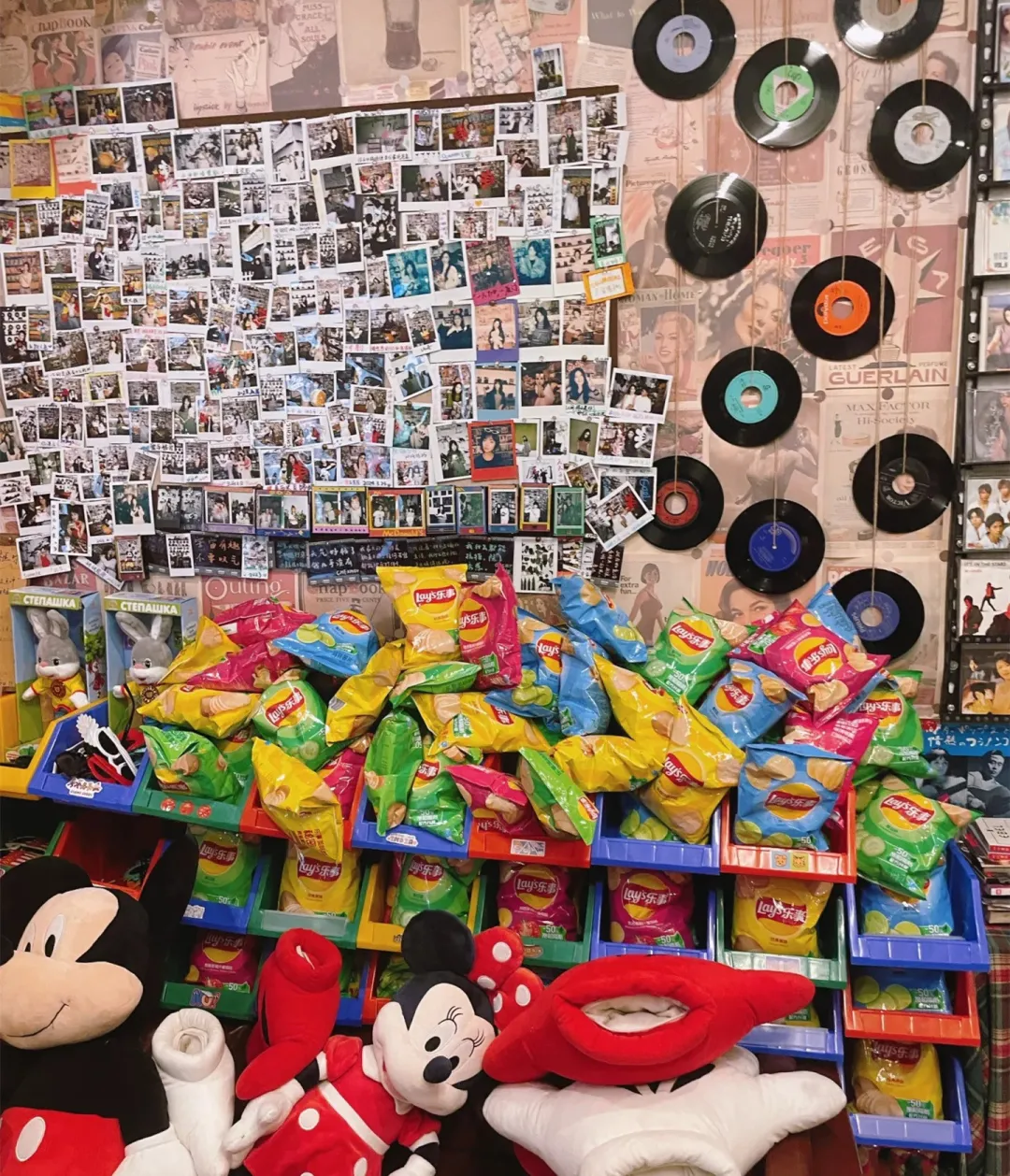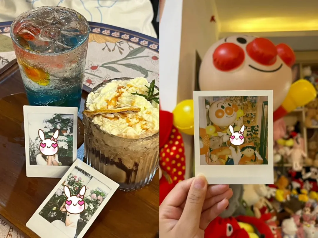 這家店主打復古風,場景精心設計,比如室外綠植庭院、拍立得相機牆、復古CD牆、娃娃牆等,網友評“每一處都超級出片”。