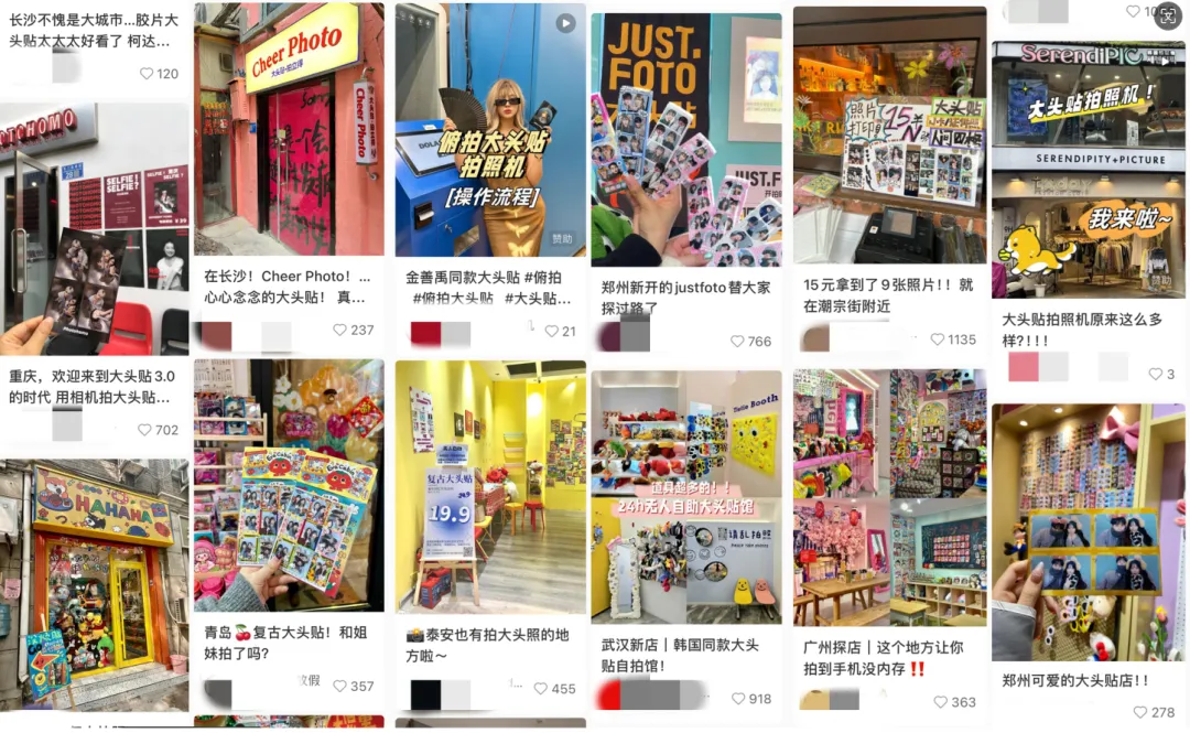 復古大頭貼之外,市場上還衍生出了新大頭貼形式,比如人生四格韓式大頭貼、俯拍機等。