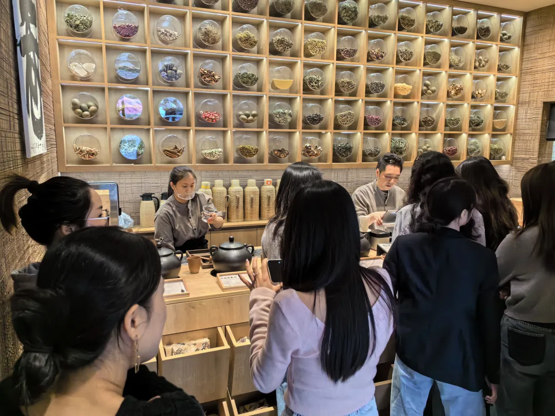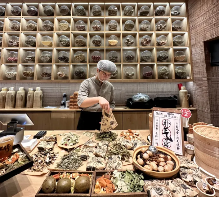 顧客點單時,店員會詢問顧客對中藥材的理解和喜好,然後提供幾種試飲,幫助消費者找到喜歡的風味。