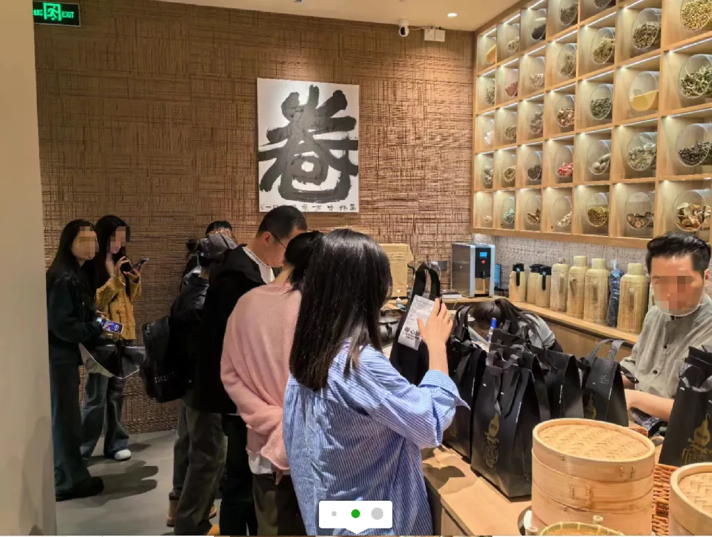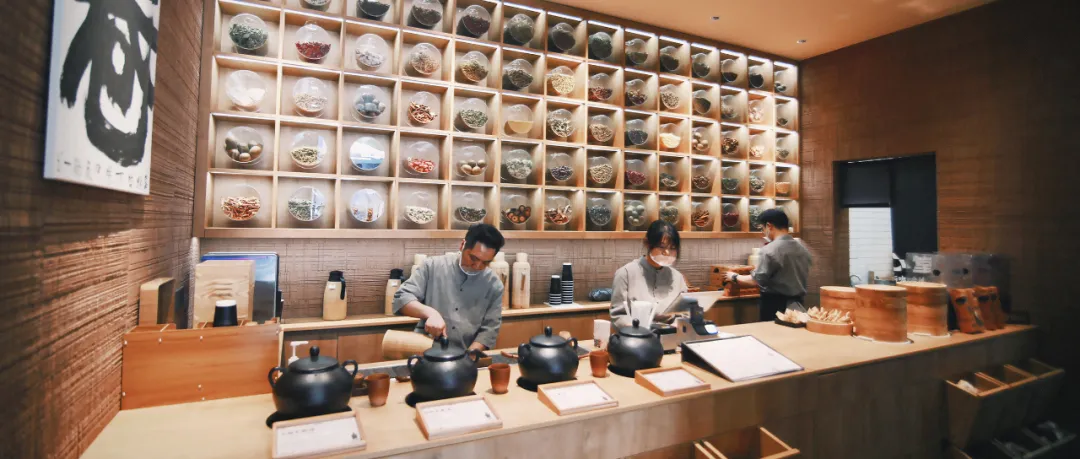 門店大約50平,滿牆陳列着藥食同源的中藥食材,店內瀰漫着濃濃的中藥味,吧枱上放着盛放中藥純湯的瓦罐。不少網友評價:“簡直是中藥鋪裏的咖啡屋”。