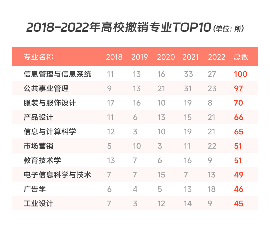 因此這幾年,教育部一直在裁撤部分高校的廣告專業。根據教育部官網的數據,2018—2022年總共撤銷了46所高校的廣告學專業,其中不乏中山大學這樣的985高校。
