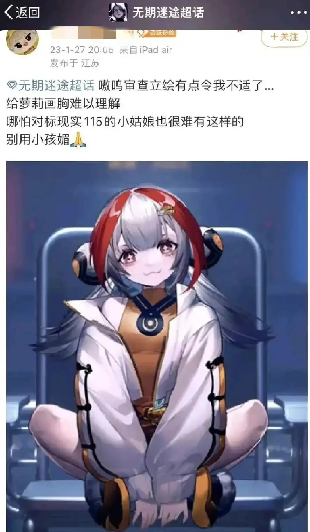 《無期迷途》的女性玩家主要活躍於微博、小紅書等社區。她們對遊戲的不滿並不在於遊戲有沒有男性角色,而是集中在那些討好男性玩家的角色設計之上,比如過於暴露的衣着、比例不當的身材等等。
