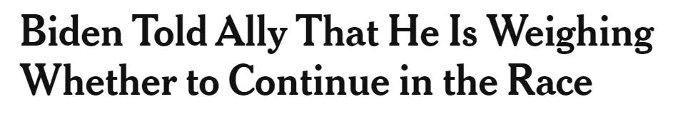 7月3日上午,《紐約時報》稱,拜登認了,考慮退選