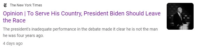 《紐時》當天發文:為了拯救美國,拜登應該退選。