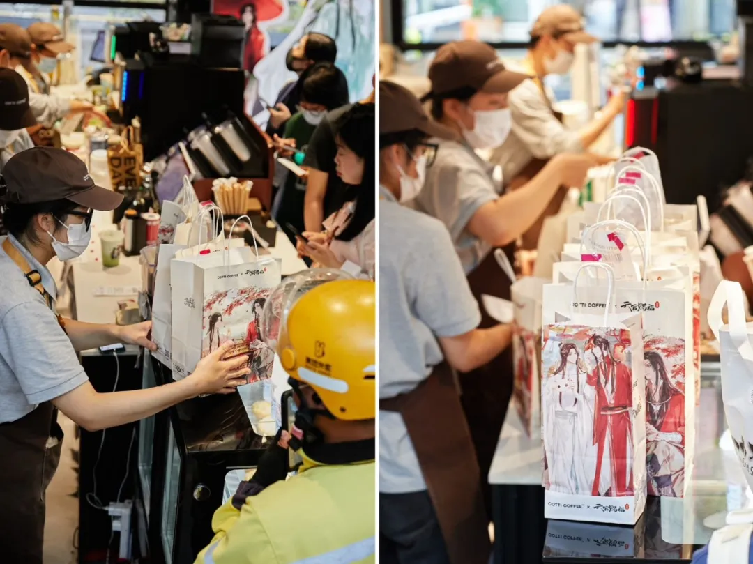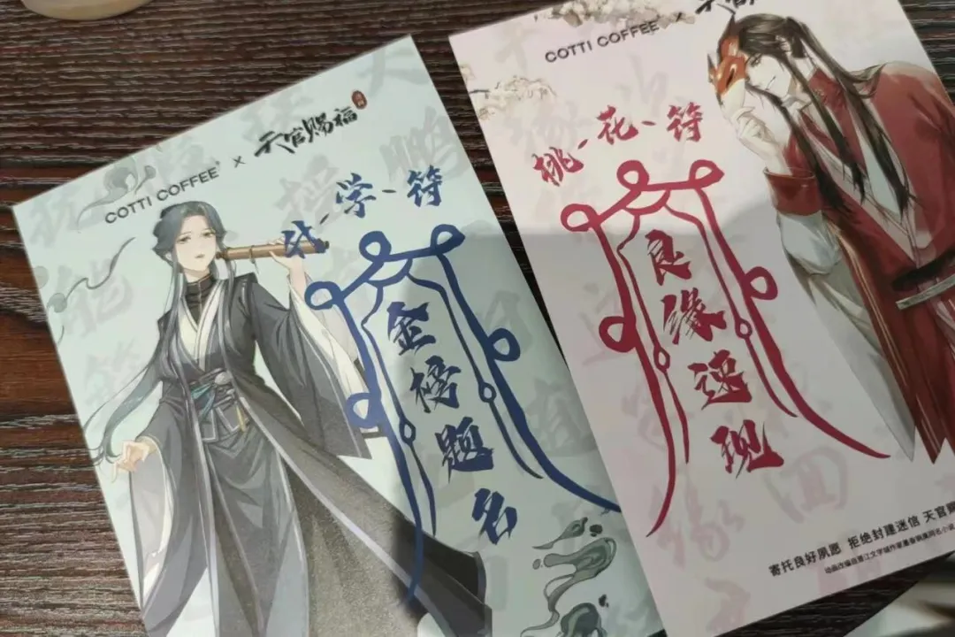 比如贊助演唱會,與遊戲、動漫、藝術、足球等聯名等。前段時間的高考季,庫迪與知名國漫《天官賜福》聯名,做了一個升學符。
