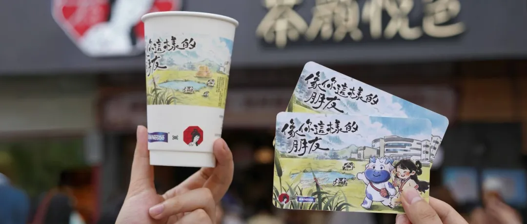 為了推廣“放心奶”,雀巢和茶顏推出了與聯名紙杯、明信片等周邊,並邀請茶顏粉絲、美食達人到雀巢牧場體驗參觀,籌備“像你這樣的朋友”線下茶話會,讓大家近距離感知牛奶品質。