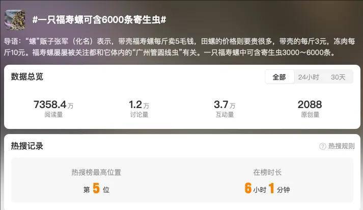 於是,一個新的科普話題衝上熱搜——一隻福壽螺可含6000條寄生蟲。
