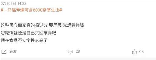 而值得注意的是,福壽螺冒充田螺,不僅在螺螄粉。有消費者表示:好多小店賣的爆炒螺絲都是用的福壽螺,甚至一家老牌田螺店也用的這玩意。