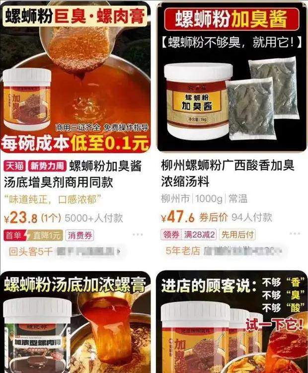 該事曝光後,不少網友發現,原來螺螄粉添加這種臭到讓人窒息的增臭劑,已經形成產業了,在電商平台,各種螺螄粉增臭劑更是被明目張膽的宣傳售賣。