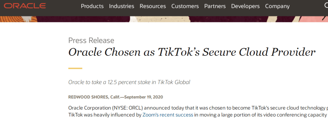 所以,憑着這層關係,甲骨文搶先一步拿下TikTok的業務,也不奇怪。