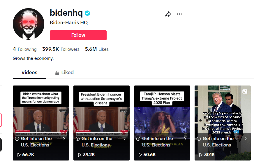 拜登的TikTok賬號