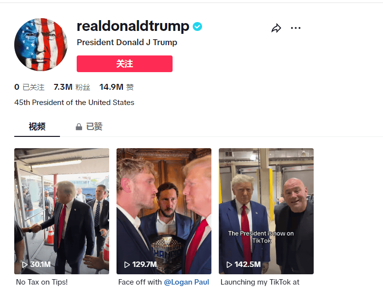 特朗普的TikTok賬號