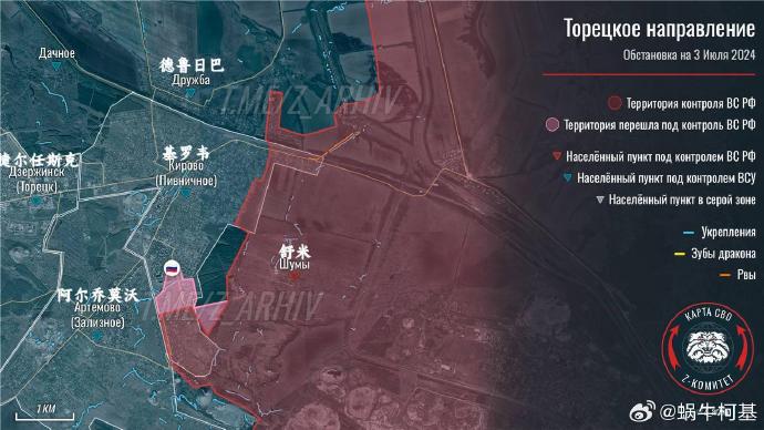 ❗️🇷🇺🇺🇦 截至2024年7月3日20點恰索夫亞爾之戰情況