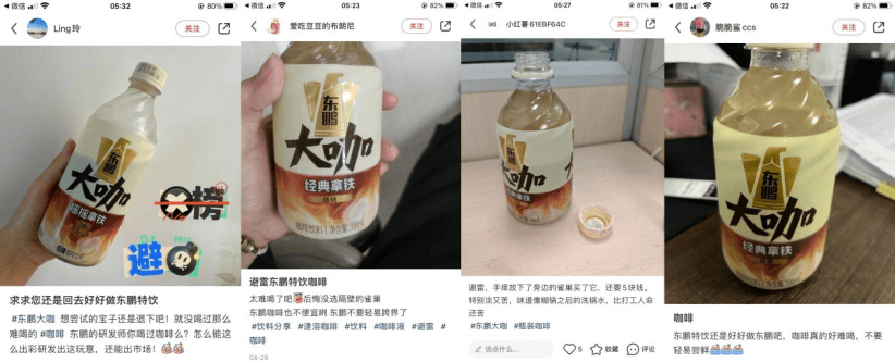 一方面,消費者對“東鵬大咖”等東鵬特飲“大單品”之外的其他飲品,反饋並不理想。以其除東鵬特飲之外,主推的“東鵬大咖”為例,在社交平台卻頻現消費者曬圖發帖稱“避雷”“東鵬的研發師喝過咖啡麼”“東鵬不要輕易跨界了”等等。