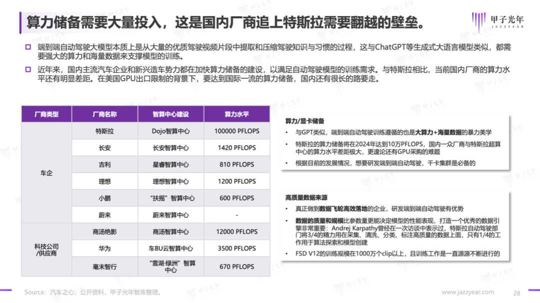 與GPT類似,端到端自動駕駛訓練遵循的也是大算力+海量數據的暴力美學,需要大量的算力儲備和高質量的訓練數據積累。