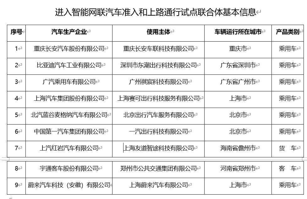 6月4日,工信部**推出的智能駕駛企業試點白名單,比亞迪、蔚來、長安、廣汽、上汽等車企獲得了L3級智能駕駛的准入和上路試點。**這些由汽車生產企業和交通出行企業所組成的“聯合體”。一家負責生產,一家負責上路測試。並且本次名單中就提到了要加強智能駕駛、物聯網等基礎設施建設 ,即“車路雲一體化”。