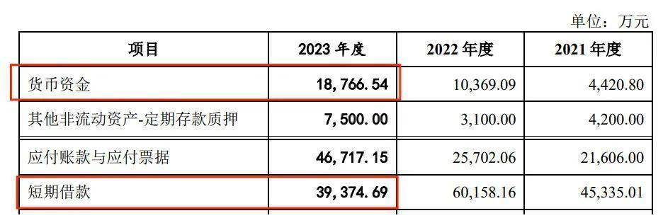 截至2023年末,公司短期借款高達3.94億元、貨幣資金僅有1.88億元,短債缺口上億。