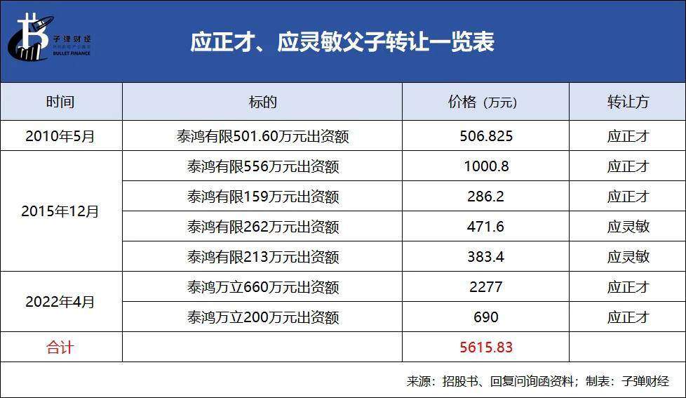 2010年至2022年期間,應正才父子數次轉讓(不包括父子之間的轉讓)公司股權,套現超5000萬元。