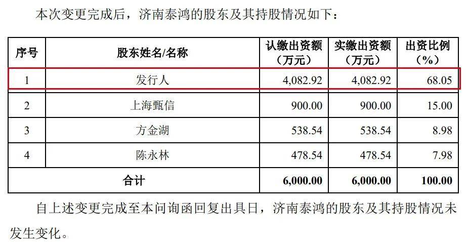 於是,泰鴻有限2011年以增資的方式入股濟南泰鴻。截至問詢函回覆之日,泰鴻萬立持有濟南泰鴻68.05%股權。
