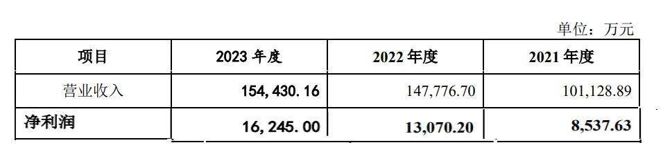 在這些大客户的支持下,泰鴻萬立業績逐年攀升。2021年至2023年,營業收入分別為10.11億元、14.78億元、15.44億元;淨利潤8537.63萬元、1.31億元、1.62億元。