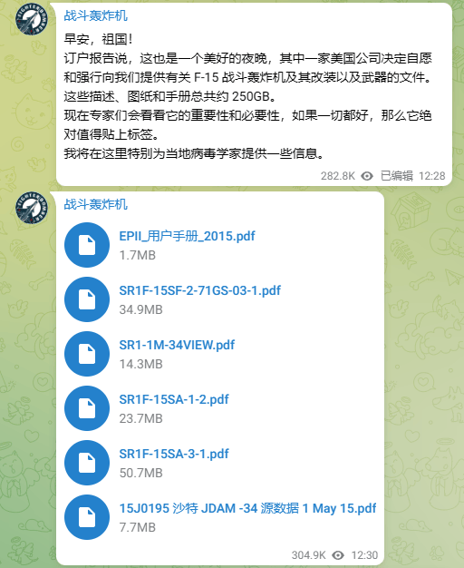 事實上,和網絡上流傳的説法不同,這些資料並不是在《戰爭雷霆》或者《DCS》的論壇羣組中被泄露的,這種説法多半是轉發過程中的誤傳。這些資料來自一個俄羅斯個人軍事頻道“FightingBomber”,該頻道聲稱,“一家美國公司主動向他們提供了多達250GB的資料”,而他公佈的僅僅是其中一部分。