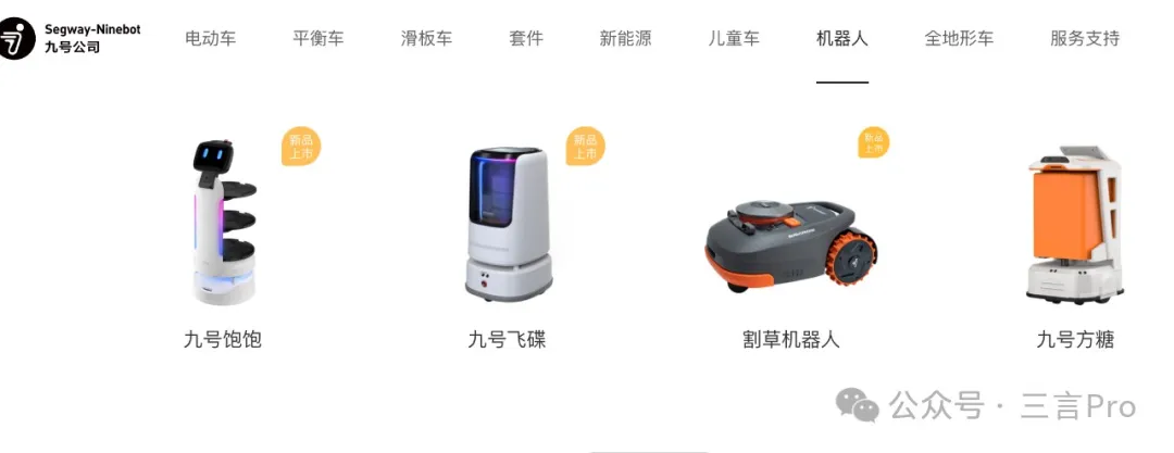 九號還有送餐機器人、割草機器人等。