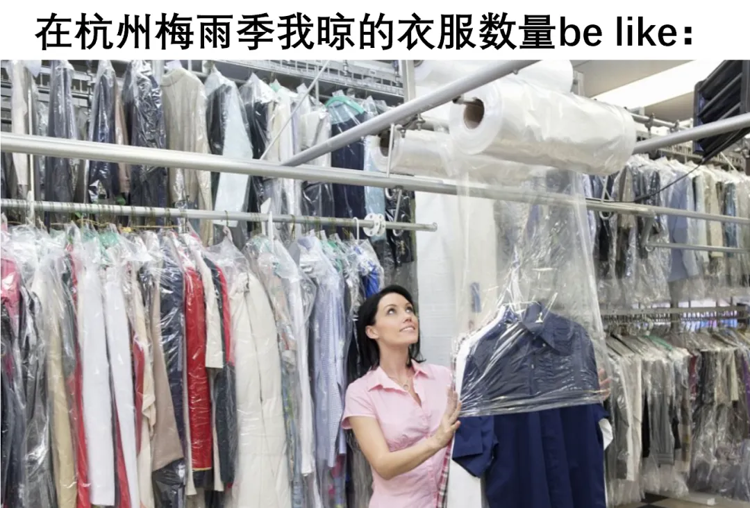 **2、衣服晾不幹。**梅雨季,雨一下就是十天半個月的,陽台的衣服根本晾不幹,之前有人説準備好一次性內褲,都是肺腑之言。