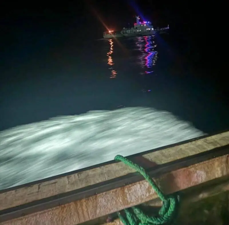台灣非法捕撈漁船被大陸海警船用探照燈照射,船長嚇出一身冷汗