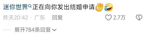 目前網易《我的世界》方面還沒有給出任何回覆,但是有部分網友已經在底下開始“催婚”了。
