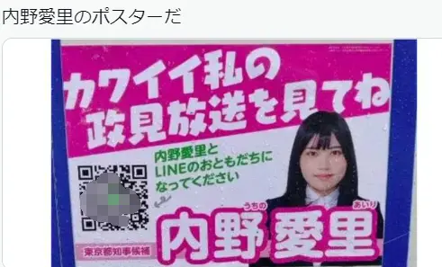 也有人對內野愛裏的出格言行感到憤怒,抨擊她把政治競選當作兒戲。