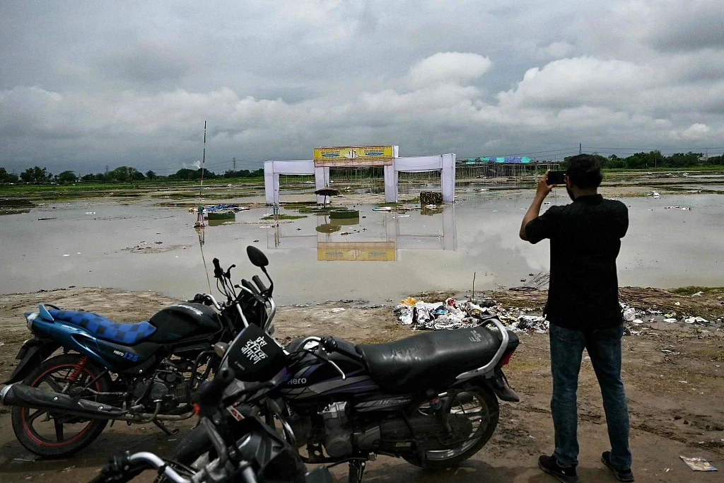 當地時間2024年7月4日,印度北方邦哈特拉斯縣,踩踏事件後,一名男子在現場拍照。視覺中國 圖