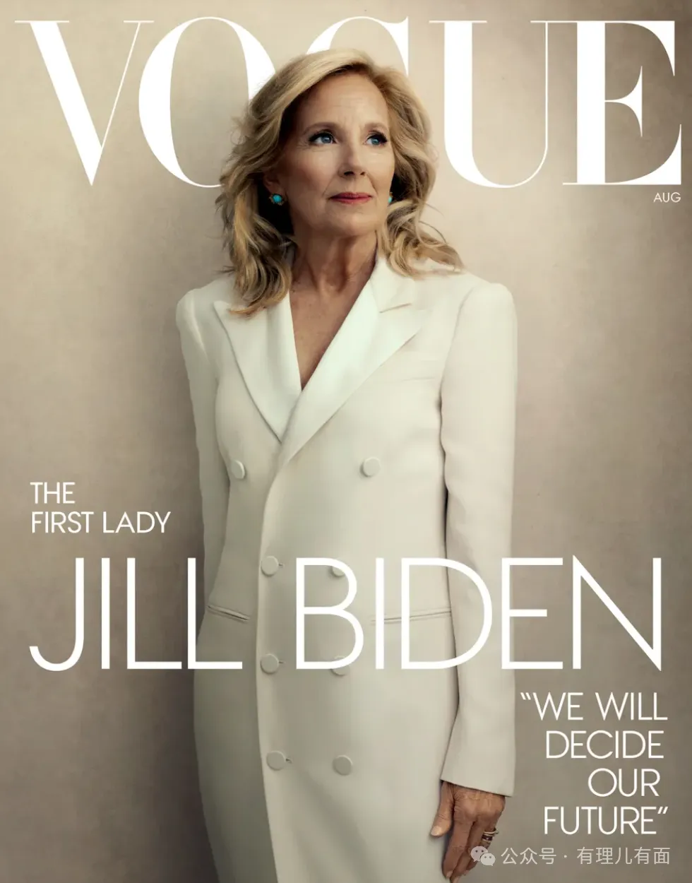 在《Vogue》雜誌8月刊的封面上,吉爾身穿價值7000美元的白色風衣出鏡,配文寫着“我們將決定我們的未來”。